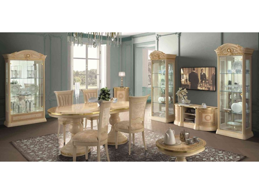Kolekcia zariadenie jedálne a celkovo dennej časti vo vysokom lesku s ikonickým dekórom VERSACE. Jednotlivé modely ponúkajú oblé tvary so zlatými prvkami zdobenia.