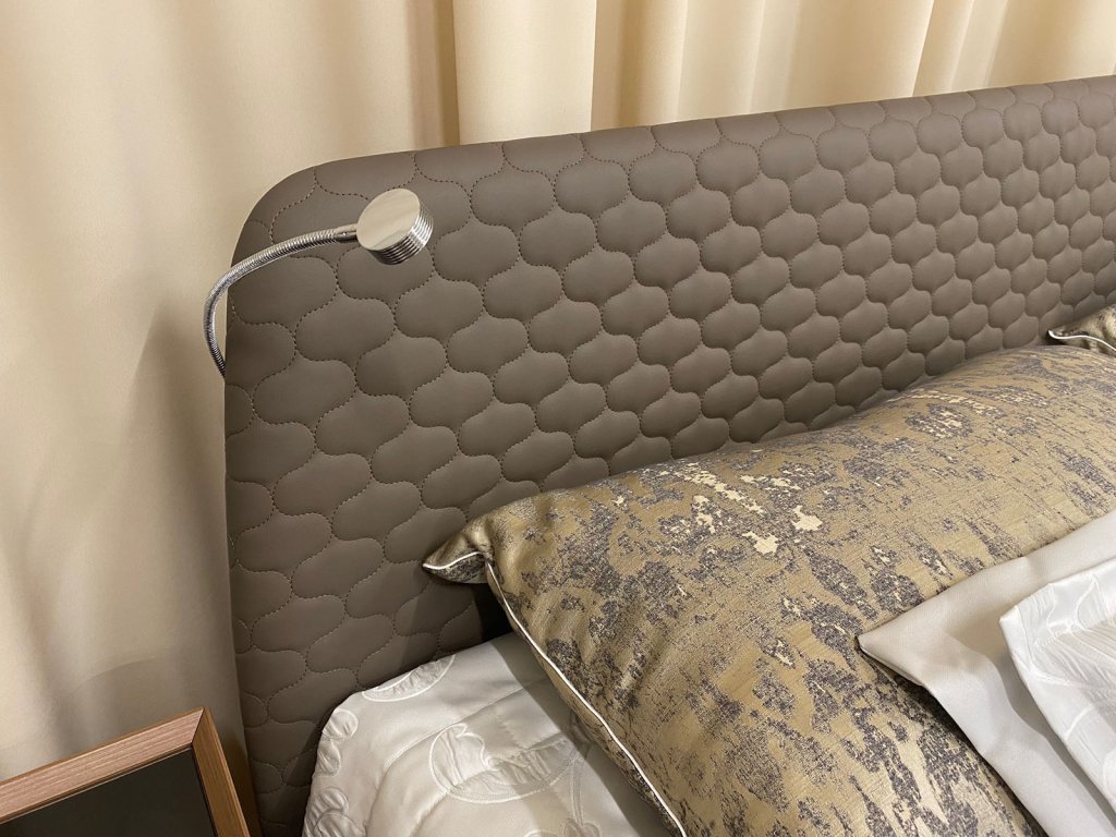 - 1 x Posteľ AKADEMY s čalúneným čelom, LED osvetlením a s roštom pre matrac 182 x 203 cm (bez úložného priestoru a bez matraca): š. 195 x hl. 217 x v.čela 94 cm