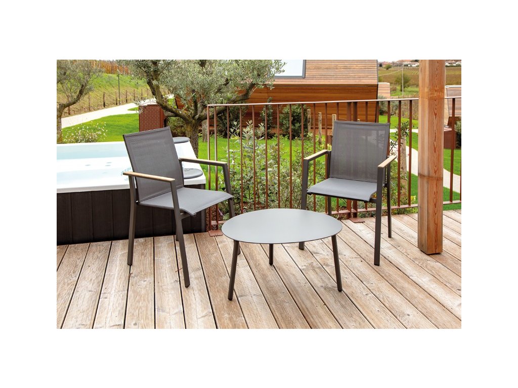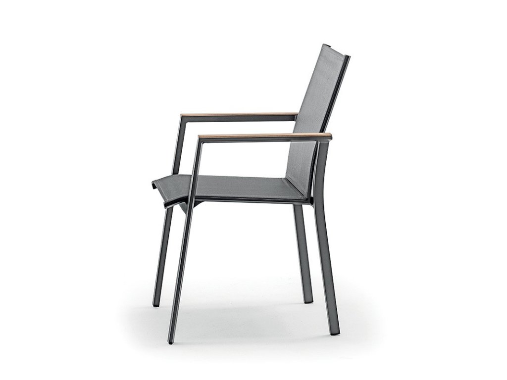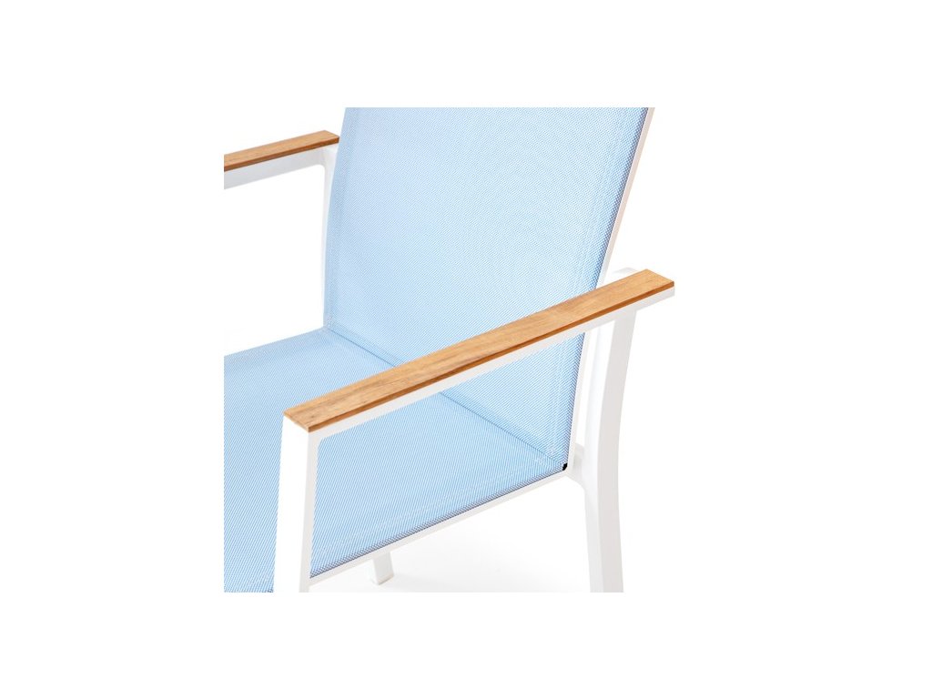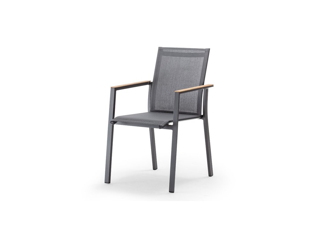 Teakové podrúčky dodávajú stoličke prirodzený akcent a príjemný dotykový komfort. Model je dostupný v dvoch farebných prevedeniach, čo umožňuje jednoduché zladenie s okolím alebo zvyškom nábytku.