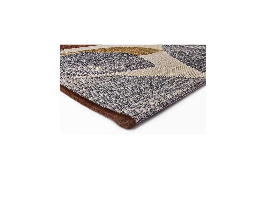 Modro-zlatý koberec AMAZZONIA 355X inšpirovaný rastlinnými vzormi džungle sa hodí do každého exteriéru.