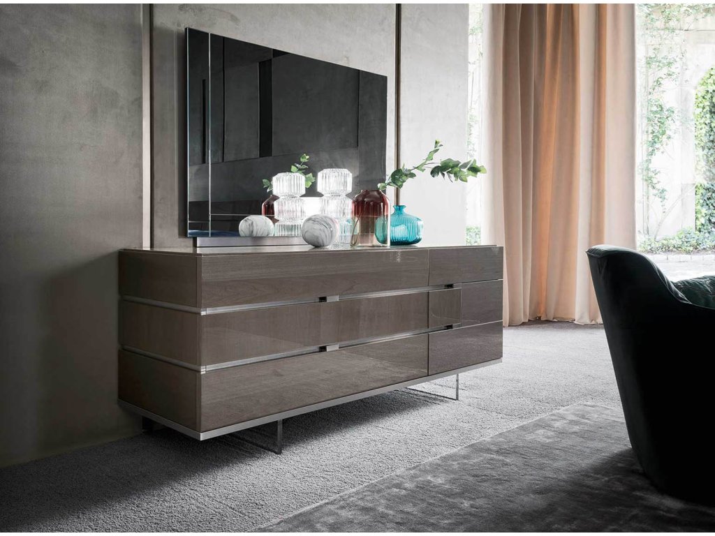 Kolekcia ATHENA je vyrobená s remeselne spracovanými drevenými dyhami v elegantnej sivej farbe vo vysokom lesku. Toto zaujímavé prevedenie podčiarkuje jej jedinečnosť v každom smere a teda každý jeden kúsok sa stáva originálom.