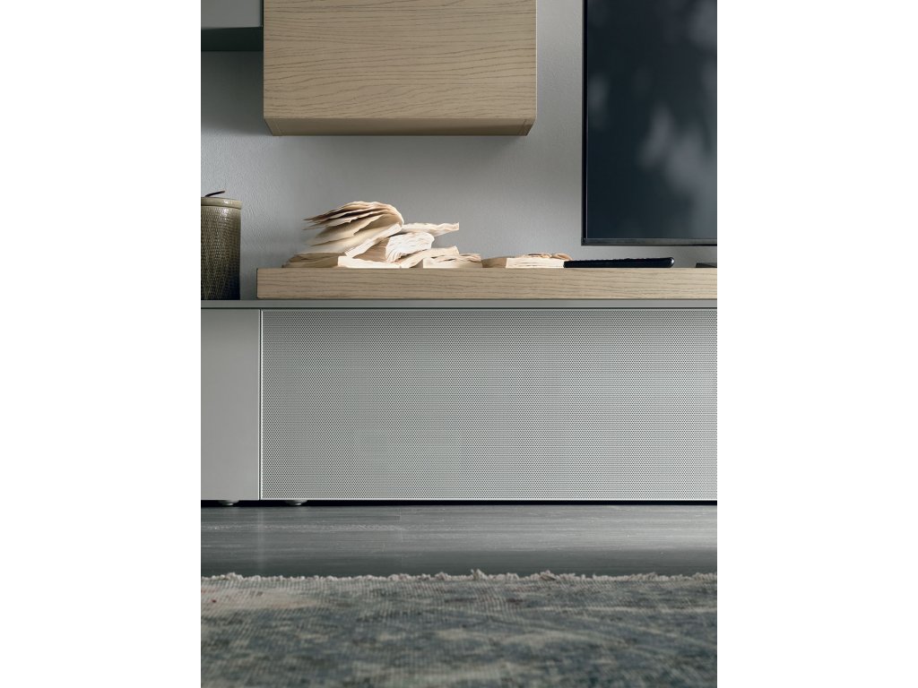 Spodná skrinka s mikroperforovanými kovovými dvierkami MEDIA BOX, umožňujú prenos signálu diaľkového ovládača do zariadení, vložených vo vnútri skrinky. PANKA akoby len priložená k MEDIA BOXU zase zvýrazňuje líniu spodnej skrinky a prepojuje tak celú zostavu.