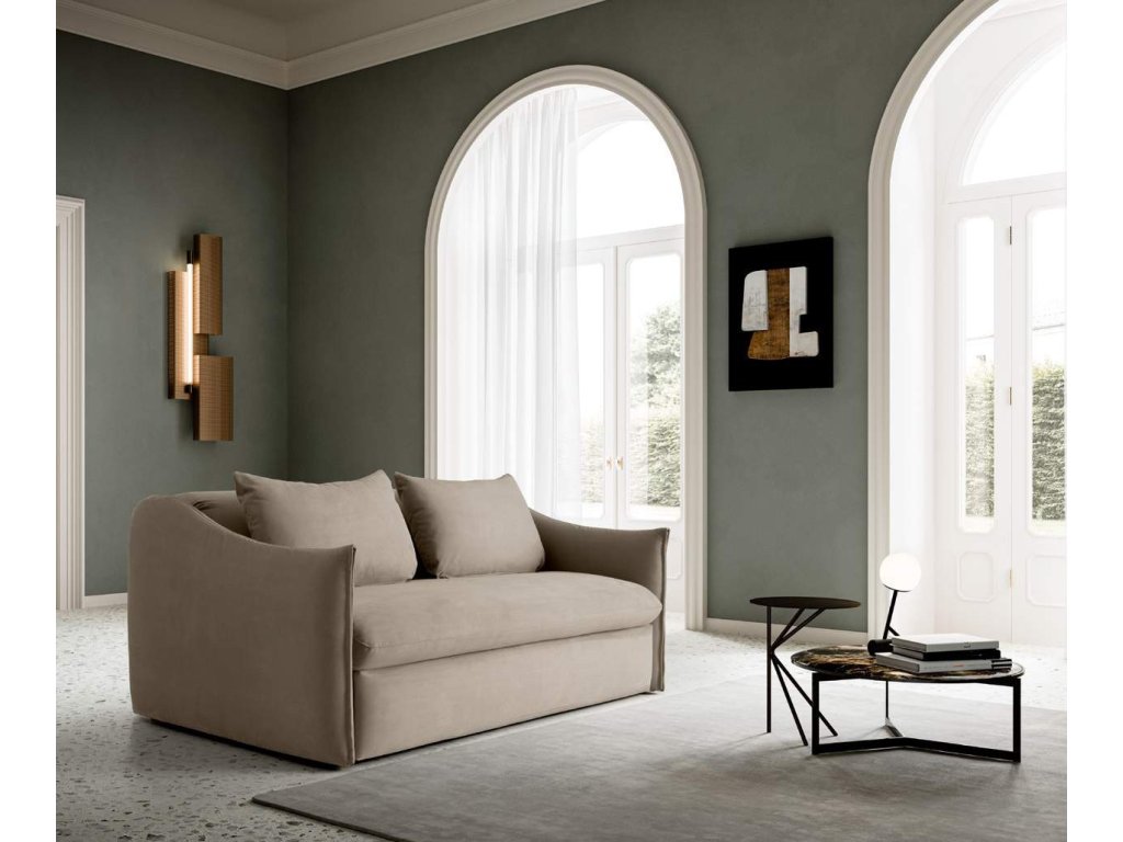 Jej tvary sú definované vlnitými podrúčkami a širokými vankúšmi v zadnej časti, čo zaručuje vysoký komfort pri sedení aj spánku.