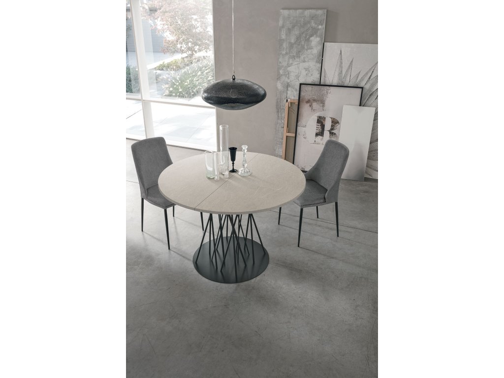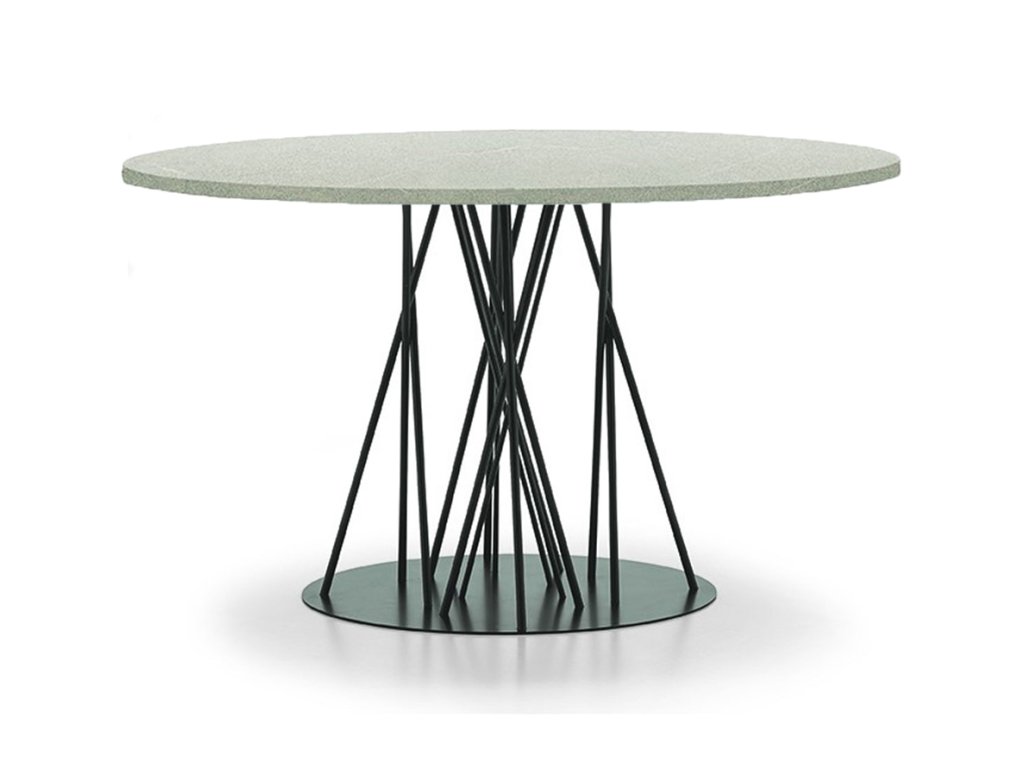 Moderný okrúhly jedálenský stôl BAMBOO je kombináciou elegancie a funkčnosti pre perfektné stolovanie. Jeho základňa je konštruovaná z kovových prvkov, ktoré pripomínajú vetve bambusového lesa.