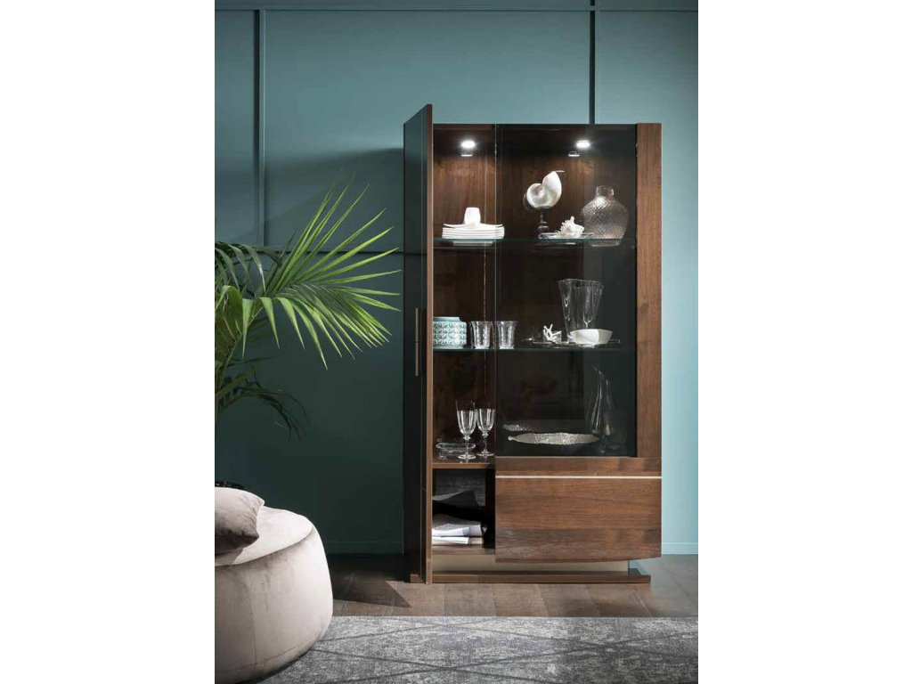 Zariaďte si obývaciu izbu v modernom a nadčasovom dizajne s kolekciou BELLAGIO. Je to originálna kolekcia s prepracovanými a lineárnymi detailmi. Okrem toho že je kolekcia BELLAGIO originálna jej kúsky sú aj praktické. Všetky kúsky sú vo farebnom prevedení orechového dreva s leskom s dizajnovými detailmi v ružovom zlate.