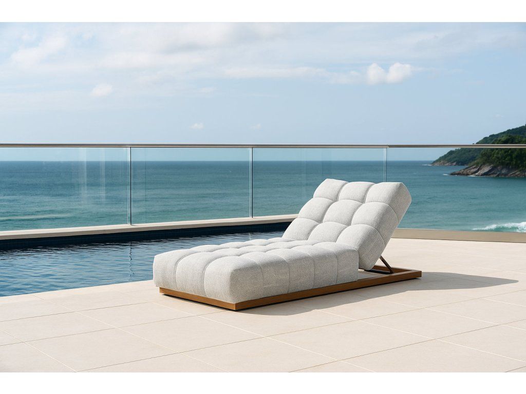 Vďaka kombinácii prírodného dreva a moderných materiálov pôsobí ležadlo luxusne a štýlovo, pričom sa dokonale hodí do exteriérových priestorov, ako sú terasy, záhrady či bazénové plochy.