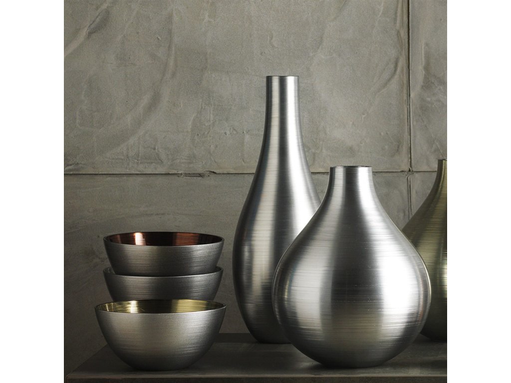 Vázy z kolekcie BOMBAY sú vyrobené zo skla s dekorom vo farbách platiny, šampanského alebo tabaku.