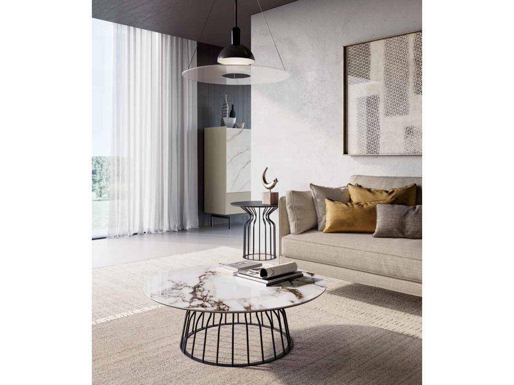 Čo sa týka základne, matne lakovaná kovová podnož dodáva príručnému stolíku moderný nádych a zaručuje pevnú oporu. O