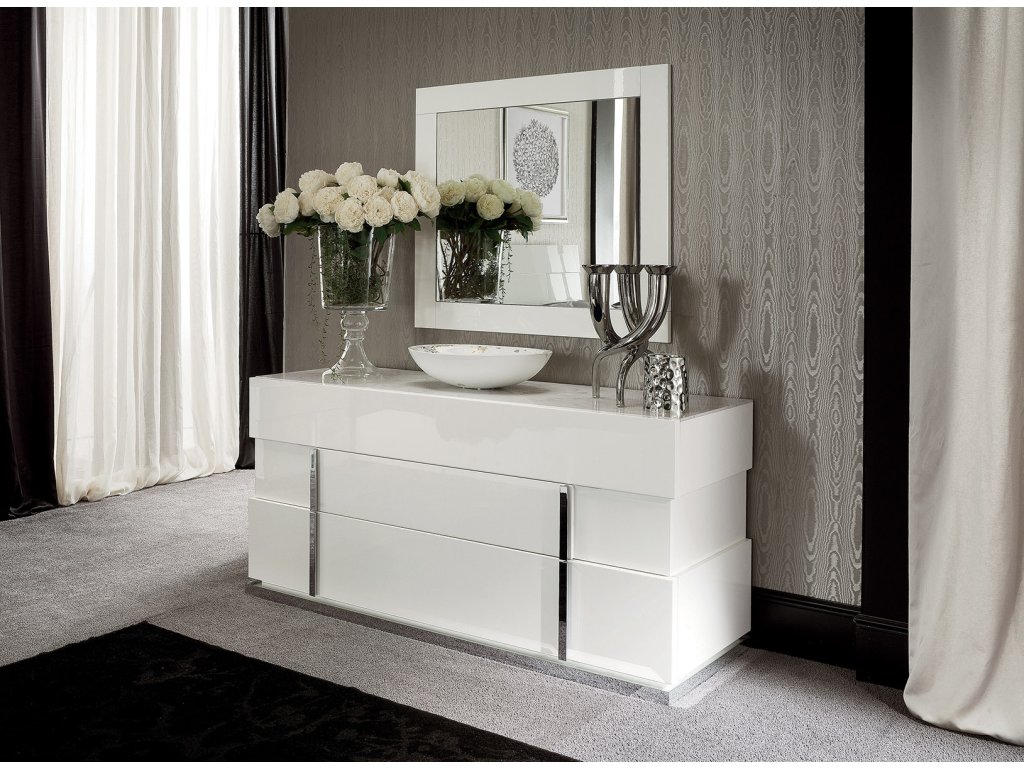 Biela farba vo vysokom lesku, doplnená mramorovými a chrómovými prvkami dodávajú kolekcii CANOVA jej pôvab a pridávajú tak hodnotu danému priestoru.