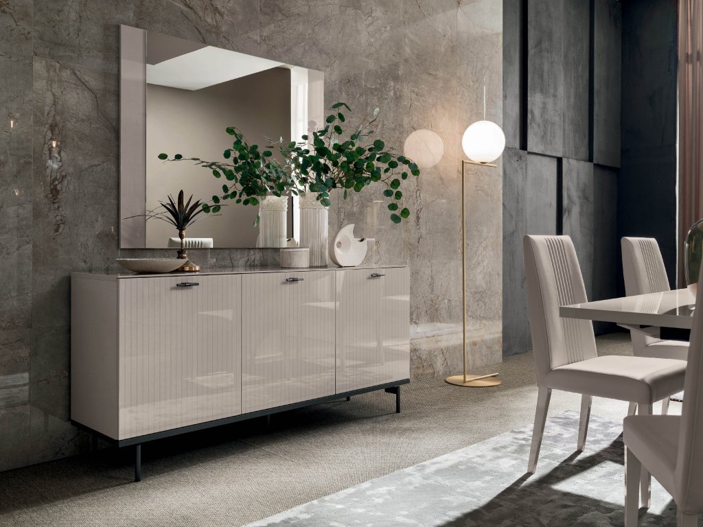 Elegancia, jemnosť, prepracované detaily, moderná kombinácia materiálov, taliansky dizajn, vysoký lesk a módnosť kolekcie CLAIRE vás nenechajú chladnými. Príjemná jemná perleťová farba „Pearl line eco veneer“ je dobre kombinovateľná s akýmkoľvek interiérom. Vysoký lesk v kombinácii s grafickými líniami vytvorenými vysokokvalitnou sieťotlačou sú špecifickou črtou kolekcie nábytku CLAIRE. Taliansky dizajnový nábytok z kolekcie CLAIRE je určený do jedálne, obývacej časti alebo do spálne. Kolekcia CLAIRE je dizajnovaná na vysokých praktických kovových čiernych nožičkách. Tieto spolu s elegantnými kovovými čiernymi úchytkami tvoria jeden celok.