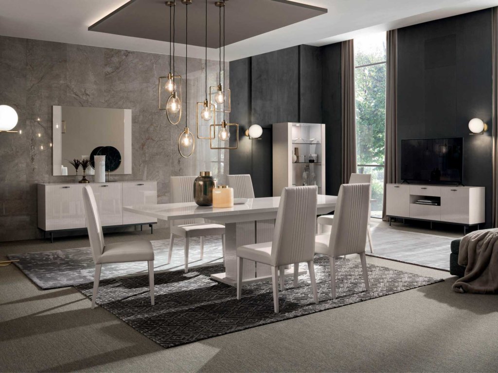 Elegancia, jemnosť, prepracované detaily, moderná kombinácia materiálov, taliansky dizajn, vysoký lesk a módnosť kolekcie CLAIRE vás nenechajú chladnými. Príjemná jemná perleťová farba „Pearl line eco veneer“ je dobre kombinovateľná s akýmkoľvek interiérom. Vysoký lesk v kombinácii s grafickými líniami vytvorenými vysokokvalitnou sieťotlačou sú špecifickou črtou kolekcie nábytku CLAIRE. Taliansky dizajnový nábytok z kolekcie CLAIRE je určený do jedálne, obývacej časti alebo do spálne. Kolekcia CLAIRE je dizajnovaná na vysokých praktických kovových čiernych nožičkách. Tieto spolu s elegantnými kovovými čiernymi úchytkami tvoria jeden celok.
