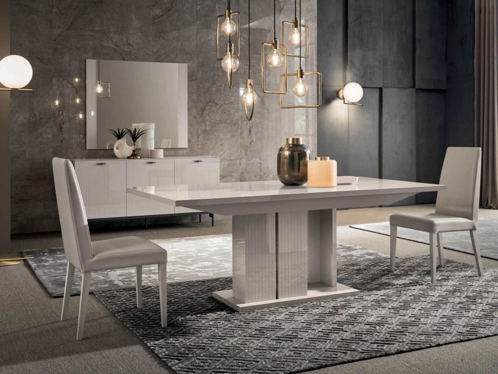Elegancia, jemnosť, prepracované detaily, moderná kombinácia materiálov, taliansky dizajn, vysoký lesk a módnosť kolekcie CLAIRE vás nenechajú chladnými. Príjemná jemná perleťová farba „Pearl line eco veneer“ je dobre kombinovateľná s akýmkoľvek interiérom. Vysoký lesk v kombinácii s grafickými líniami vytvorenými vysokokvalitnou sieťotlačou sú špecifickou črtou kolekcie nábytku CLAIRE. Taliansky dizajnový nábytok z kolekcie CLAIRE je určený do jedálne, obývacej časti alebo do spálne. Kolekcia CLAIRE je dizajnovaná na vysokých praktických kovových čiernych nožičkách. Tieto spolu s elegantnými kovovými čiernymi úchytkami tvoria jeden celok.
