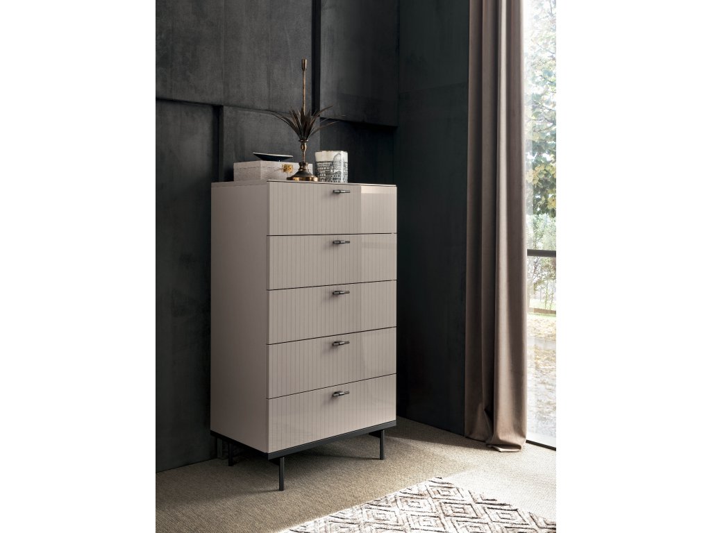 Elegancia, jemnosť, prepracované detaily, moderná kombinácia materiálov, taliansky dizajn, vysoký lesk a módnosť kolekcie CLAIRE vás nenechajú chladnými. Príjemná jemná perleťová farba „Pearl line eco veneer“ je dobre kombinovateľná s akýmkoľvek interiérom. Vysoký lesk v kombinácii s grafickými líniami vytvorenými vysokokvalitnou sieťotlačou sú špecifickou črtou kolekcie nábytku CLAIRE. Taliansky dizajnový nábytok z kolekcie CLAIRE je určený do jedálne, obývacej časti alebo do spálne. Kolekcia CLAIRE je dizajnovaná na vysokých praktických kovových čiernych nožičkách. Tieto spolu s elegantnými kovovými čiernymi úchytkami tvoria jeden celok.