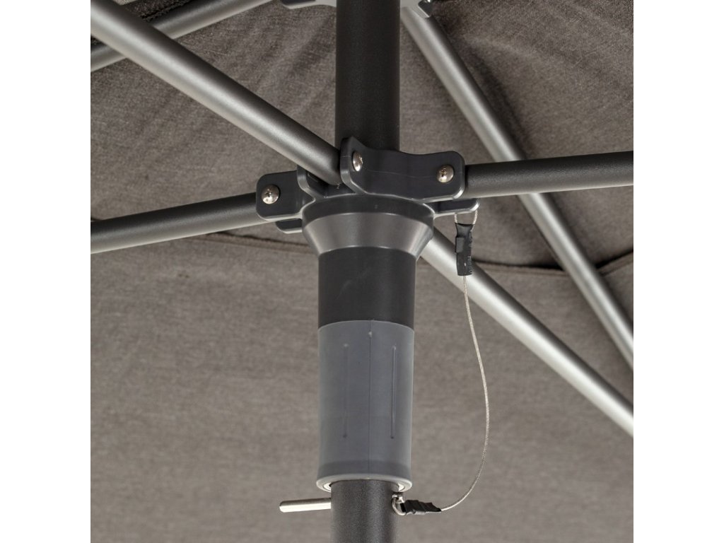 Vďaka pevnej jednodielnej tyči s priemerom 38 mm je slnečník stabilný a dostatočne pevný, aby odolal veľmi silnému vetru počas horúcich letných dní. Poťah z olefínovej tkaniny zabezpečuje spoľahlivú ochranu pred slnečnými lúčmi, pričom je zároveň ľahko udržiavateľný.