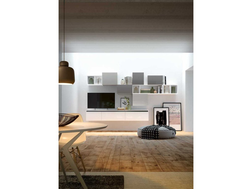 ktoré sa otvárajú do obytnej časti so stenovými konzolami a funkčnými priečkami.
