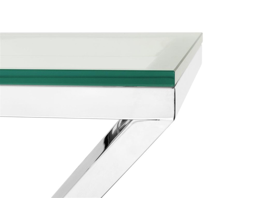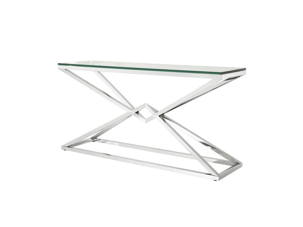 Tento geometrický konzolový stolík CONNOR rozžiari Vašu obývačku a doplní ostatné kúsky, vďaka ktorým sa priestor stane očarujúcim. Vytvorte si z kolekcie CONNOR miesto, ktorým sa budete pýšiť, kedykoľvek budete mať príležitosť. Stolík má obdĺžnikový tvar so základom vytvoreným z nehrdzavejúcej ocele, na ktorom je položená masívna vrchná doska z číreho skla. Už samotná váha skla je neuveriteľných takmer 25 kg. Na výber máte z dvoch variantov, a to strieborné prevedenie s vysokoleštenou oceľou a čírym sklom alebo očarujúcu zlatú povrchovú úpravu. Ak preferujete užšie, ale za to vyššie konzoly, určite neváhajte pozrieť sa aj na túto elegantnú konzolu CONNOR.