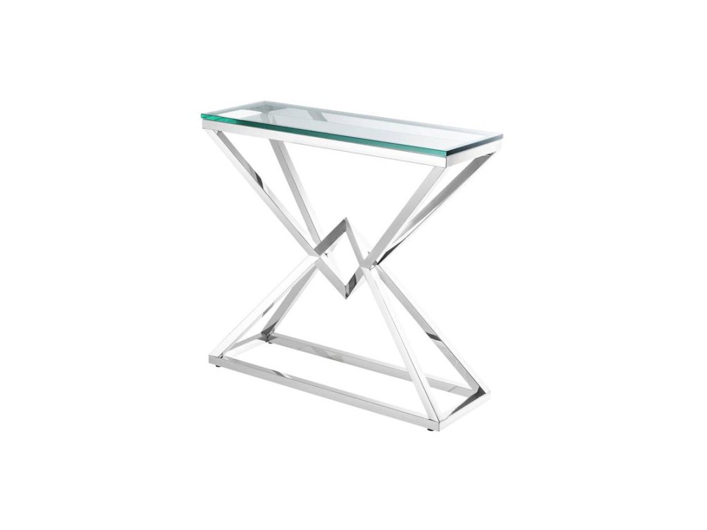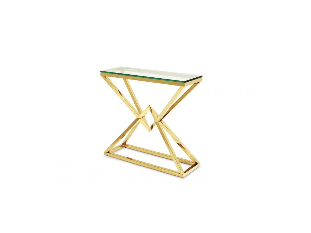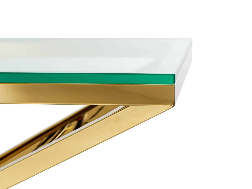 Táto geometricky tvarovaná konzola CONNOR rozžiari Vašu obývačku a doplní ostatné kúsky, vďaka ktorým sa priestor stane očarujúcim. Vytvorte si z kolekcie CONNOR miesto, ktorým sa budete pýšiť, kedykoľvek budete mať príležitosť. Konzola má obdĺžnikový tvar so základom vytvoreným z nehrdzavejúcej ocele, na ktorom je položená masívna vrchná doska z číreho skla. Už samotná váha skla je neuveriteľných 11 kg. Na výber máte z dvoch variantov, a to strieborné prevedenie s vysokoleštenou oceľou a čírym sklom alebo očarujúcu zlatú povrchovú úpravu. Ak preferujete širšie, ale za to nižšie konzolové stolíky, určite neváhajte pozrieť sa aj na tento nadčasový kúsok z kolekcie CONNOR.