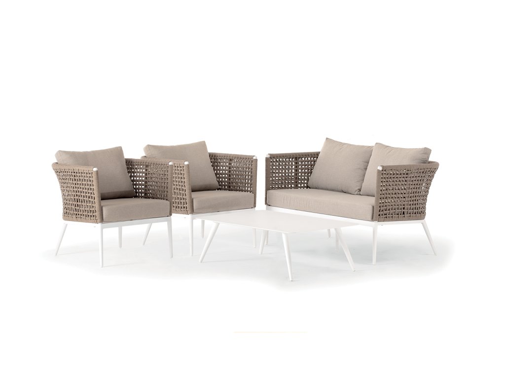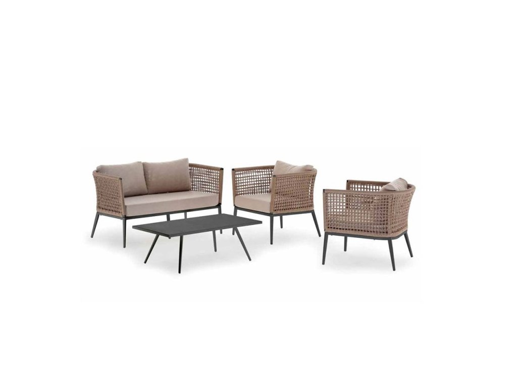 Záhradné sedenie CUBA si môžete objednať aj vo väčšom kompletnom sete, a to konkrétne ako 3 SET, ktorý obsahuje diván + 2x kreslo + stolík.