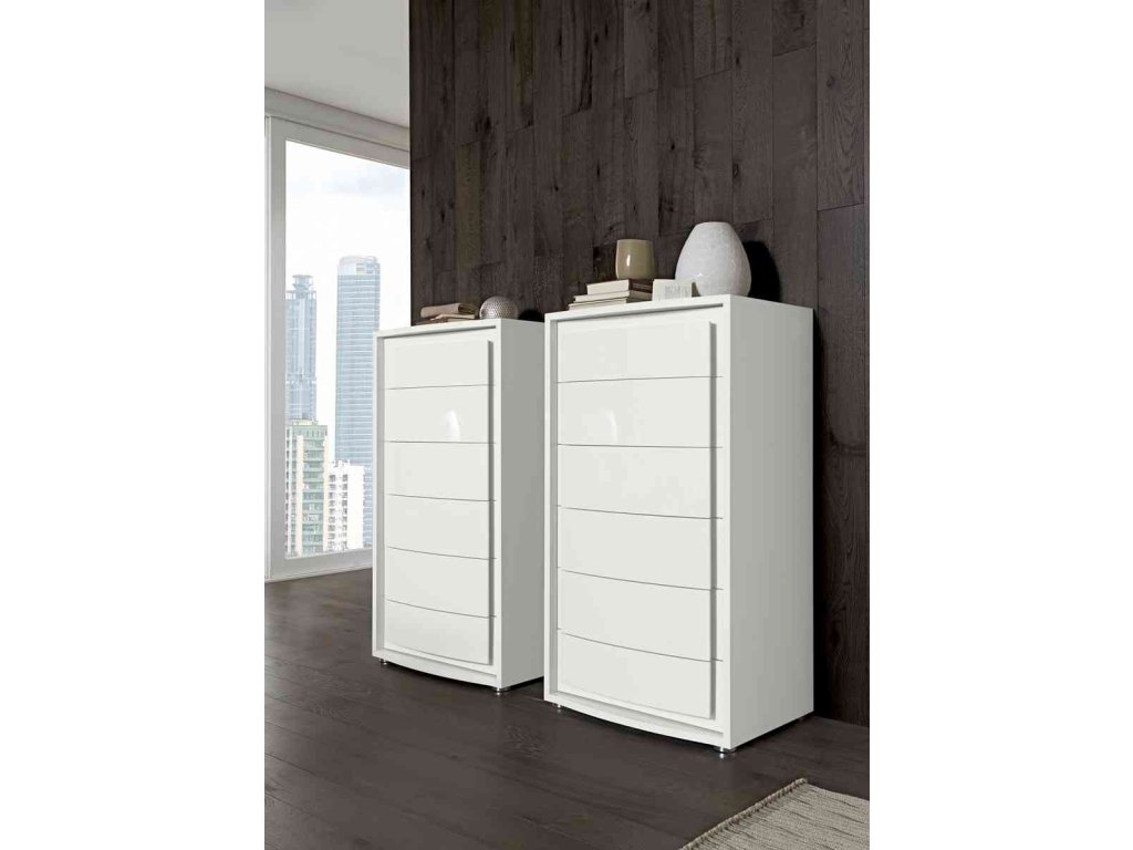 Moderný nočný stolík DAMA BIANCA v bielej lesklej farbe.