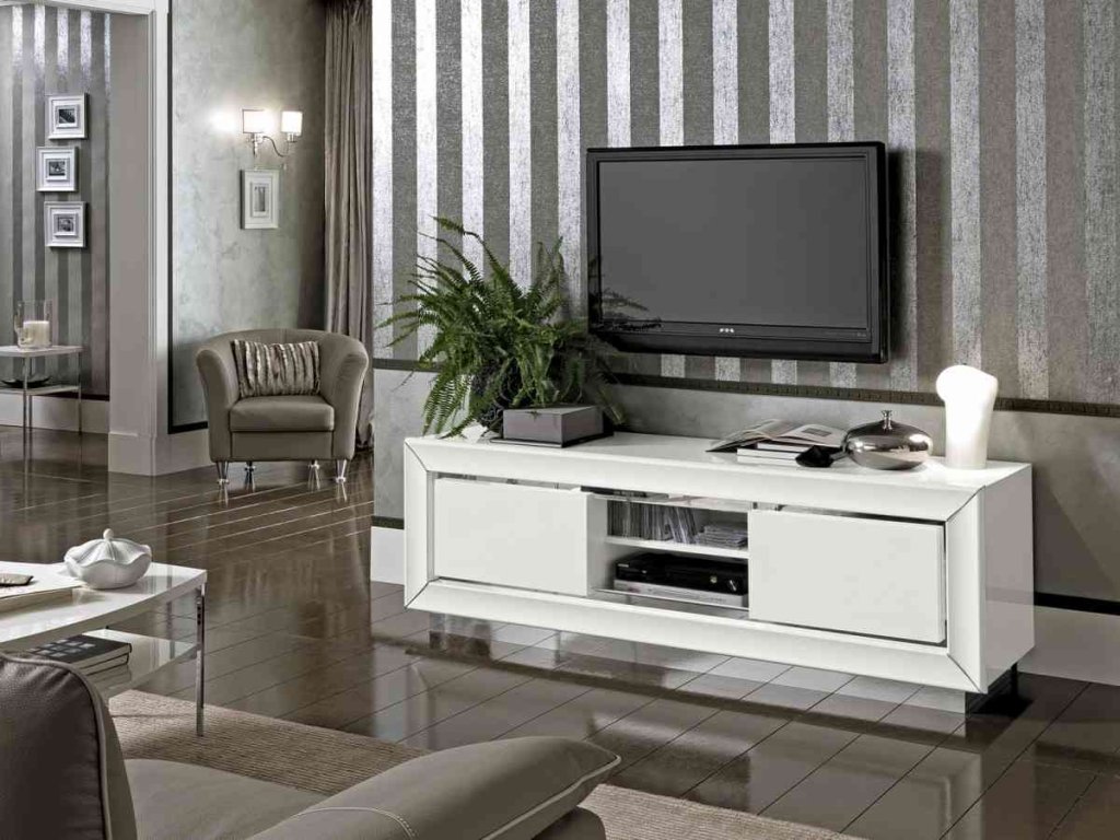 Praktická moderná TV skrinka DAMA BIANCA je navrhnutá s otvoreným priestorom na TV techniku.