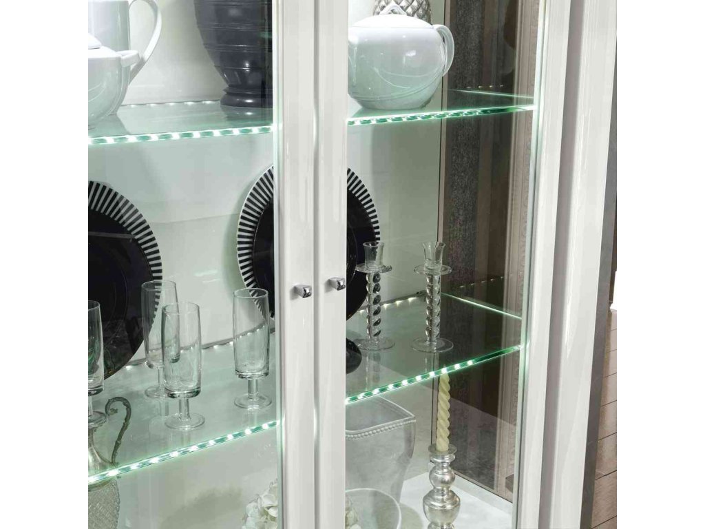 Kolekcia DAMA BIANCA sa vyrába v bielej farbe vo vysokom lesku, ktorá rozžiari Vašu domácnosť. Pokiaľ máte dostatok priestoru skúste sa poobzerať po väčšej 2 dverová vitríne. Budete mať dostatok priestoru na vystavenie Vášho najcennejšieho porcelánu.