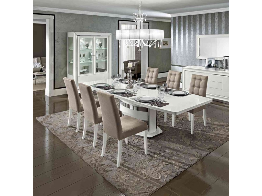 Moderný jedálenský stôl s rozťahovaním DAMA BIANCA/ROMA. Kolekcia DAMA BIANCA sa vyrába v bielej farbe vo vysokom lesku, ktorá rozžiari Vašu domácnosť.
