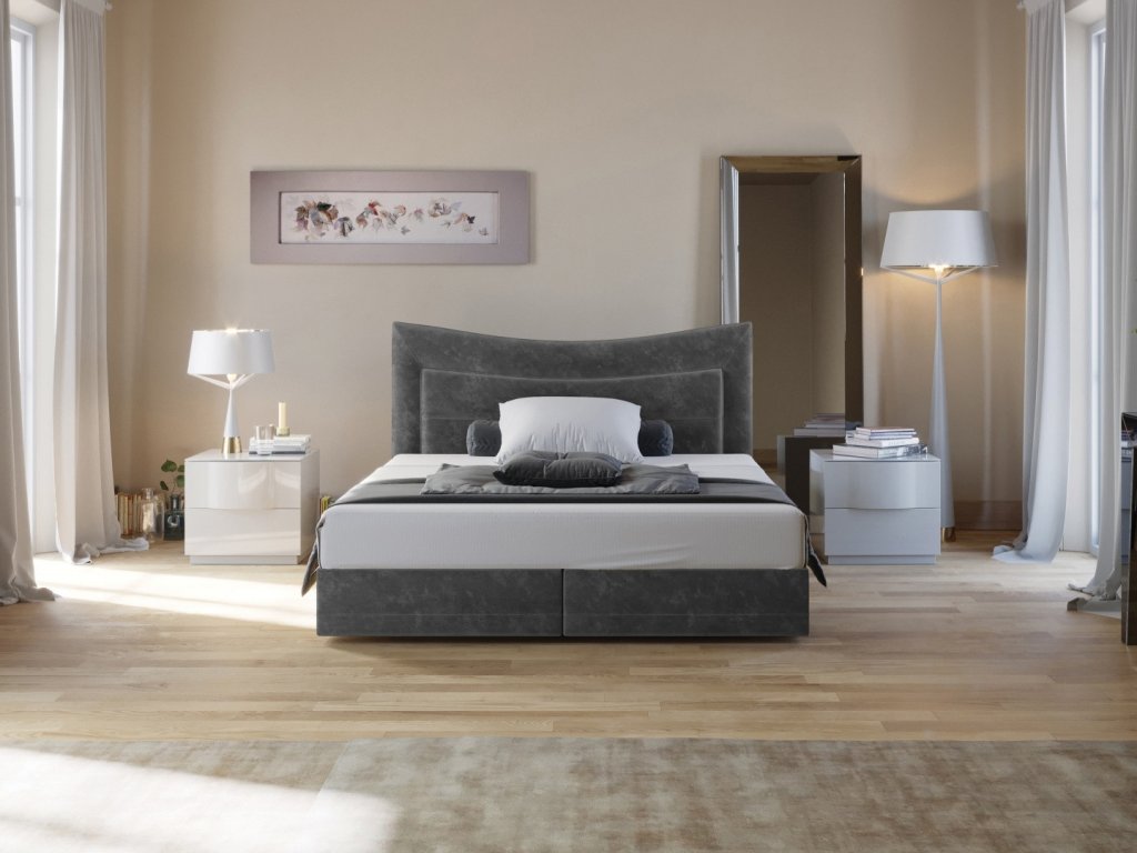 Samozrejmosťou pri tejto kontinentálne posteli sú rôzne možnosti pre spodný box. V ponuke je štandardný SPRING BOX alebo POLY BOX, prípadne si môžete čelo postele nakombinovať s rôznymi druhy úložného systému.