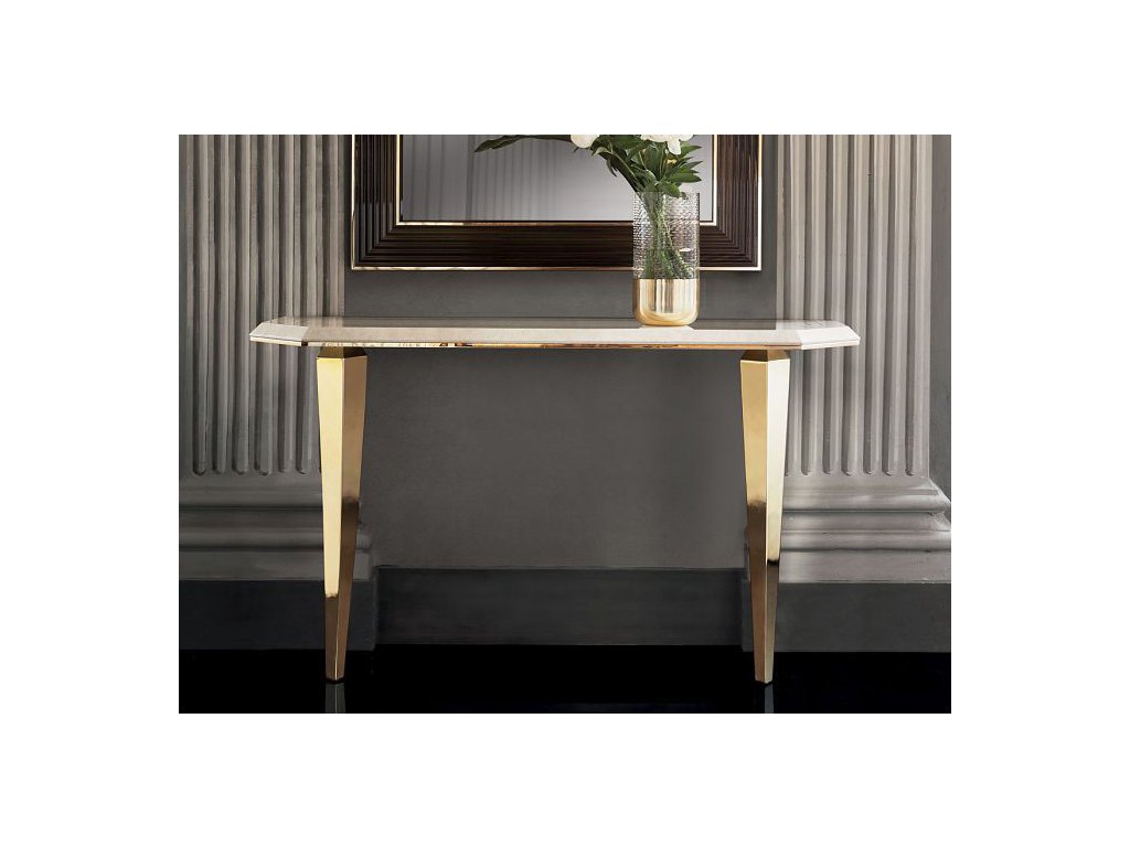 Zaujímavý taliansky dizajn pre Váš interiér. Nábytok z kolekcie DIAMANTE čerpá inšpiráciu z geometrických tvarov z brúsených diamantov, ktoré zvýrazňujú nádherné línie predstavujúce to najlepšie z "MADE IN ITALY". Každý detail v kolekcii DIAMANTE odzrkadľuje vycibrený vkus, ktorý je súčasťou jemnej práce klenotníka, pričom detaily každého kusu nábytku sú vypracované tak, aby pôsobili moderným dojmom, vďaka čomu elegantne vyniknú v akomkoľvek prestížnom interiéri. Skvostnú kolekciu DIAMANTE treba obdivovať ako šperk. Základný koncept kolekcie DIAMANTE je fascinujúci zložitý povrch vzácneho diamantu. Kolekcia DIAMANTE je navrhnutá z vysoko-technického materiálu TECRES. Materiál TECRES vzniká vytlačením polyméru, ktorý sa následne lisuje pri vysokom tlaku. Výsledné kusy sú extrémne tvrdé a robustné. Nábytok z kolekcie DIAMANTE je vyrábaný v mramorovom dekore vo vysokom lesku so zlatými detailmi v kombinácií s tmavo-hnedým drevom vo vysokom lesku. Vitríny z kolekcie DIAMANTE sú dodávané s LED osvetlením, sklenenými policami a zadná stena vitrín je so zrkadlom. Luxusne vynikne tak všetko, čo do vitrín umiestnite. Dovoľte si vo Vašom interiéri luxusné nadštandardné kúsky a zariaďte každú miestnosť vo Vašom dome touto elegantnou kolekciou. Vitríny môžete doplniť komodou alebo televíznou skrinkou, tieto Vám doprajú množstvo úložného priestoru. Konzola z kolekcie je dizajnovo riešená ako do predsiene tak aj do jedálne alebo obývačky. Je nádherná v kombinácií s luxusným zrkadlom. V jedálni je potrebný jedálenský stôl. Táto kolekcia ponúka štvorcový, okrúhly a obdĺžnikový jedálenský stôl s rozťahovaním alebo bez rozťahovania. K jedálenskému stolu môžete doplniť luxusné stoličky, ktoré si môžete objednať aj v iných poťahových látkach ako sú na obrázkoch.