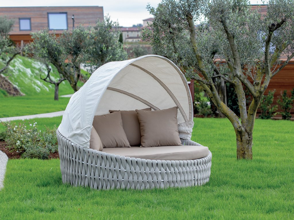 - Exteriérová okrúhla dvoj-posteľ EDEN vytvorí na Vašej terase, záhrade alebo pri bazéne pravú oázu pokoja.