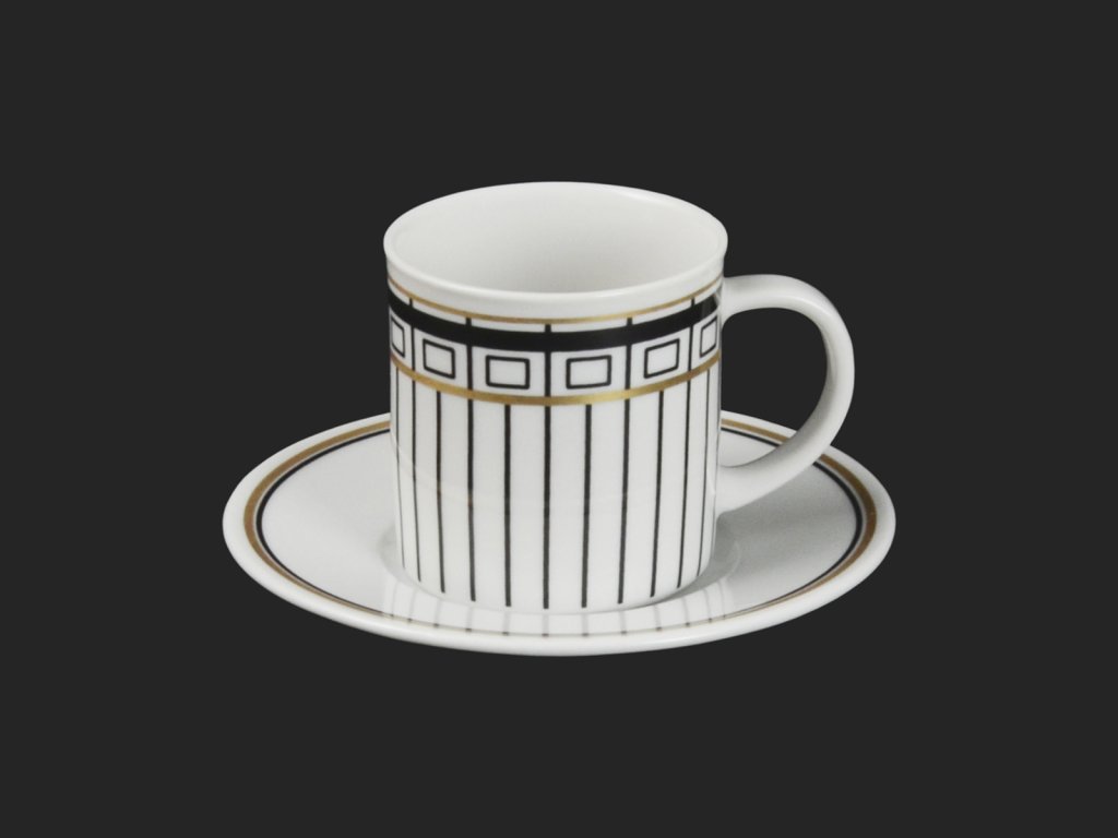Jej jemné čierne prúžky v zvislých či vodorovných líniách decentne rámuje špeciálne zlato, ktoré je vhodné pre použitie v umývačke riadu.