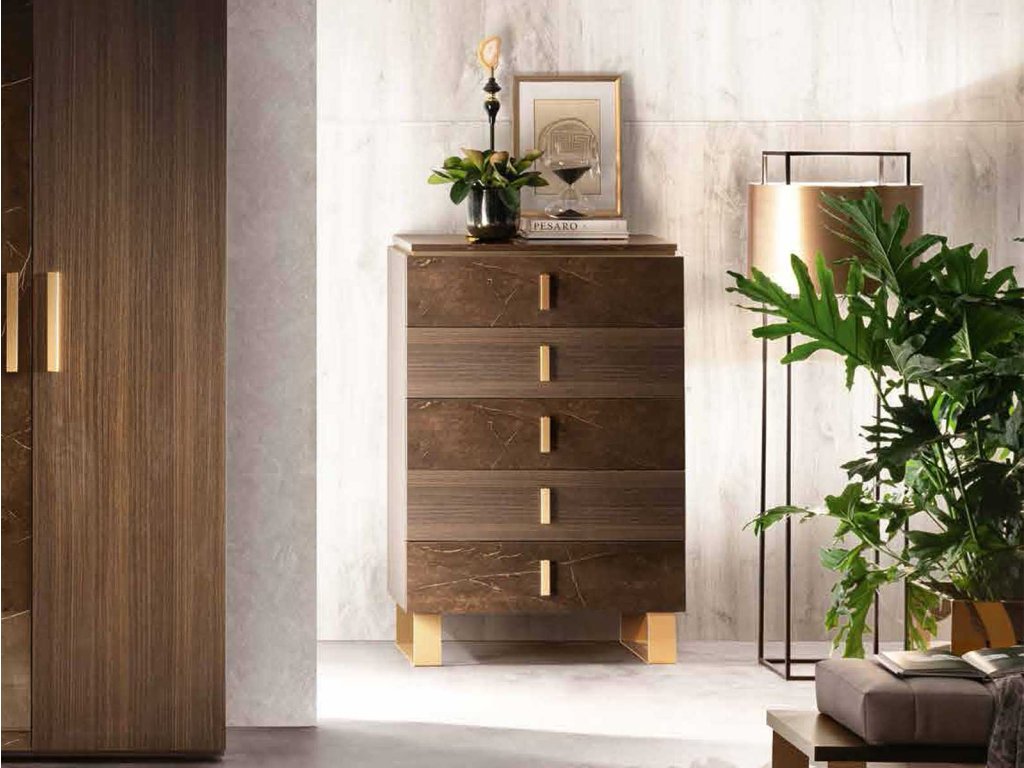 Koncept kolekcie je inšpirovaný klasickým/súčasným dualizmom, kontrastnými textúrami dvoch povrchových úprav - tmavých odtieňov wenge a lesklým mramorovým dekorom, ktoré korunujú elegantné zlaté prvky. Tieto prvky s matným zlatým povrchom sú efektne použité na komodách, vitrínach, jedálenských stoloch, televíznych skrinkách, konzole a konferenčných stolíkoch. Veď posúďte sami!