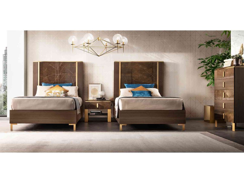 K dispozícii je posteľ, nesporný centrálny bod spálne v niekoľkých verziách: s čalúneným alebo dreveným čelo postele, so zabudovaným LED osvetlením. Rám postele je tiež k dispozícii v drevenom alebo čalúnenom prevedení s možnosťou úložného priestoru pod posteľou.