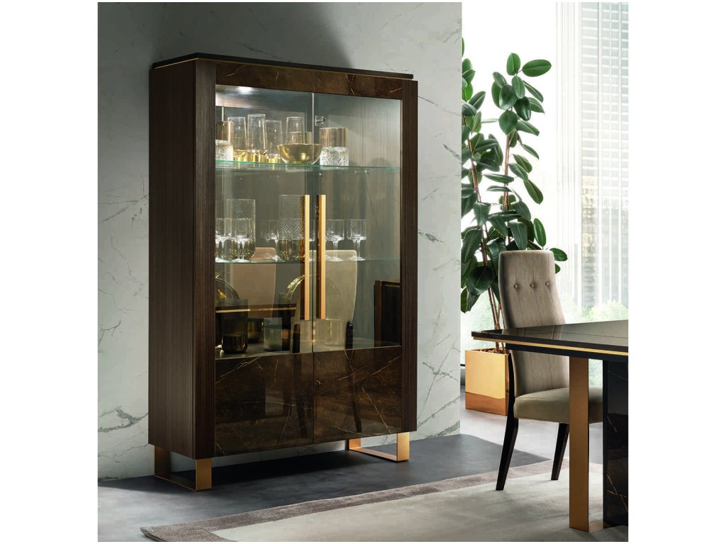 Koncept kolekcie je inšpirovaný klasickým/súčasným dualizmom, kontrastnými textúrami dvoch povrchových úprav - tmavých odtieňov dreva wenge a lesklým mramorovým dekorom, ktoré korunujú elegantné zlaté prvky. Tieto prvky s matným zlatým povrchom sú efektne použité na komodách, vitrínach, jedálenských stoloch, televíznych skrinkách, konzole a konferenčných stolíkoch. Veď posúďte sami!