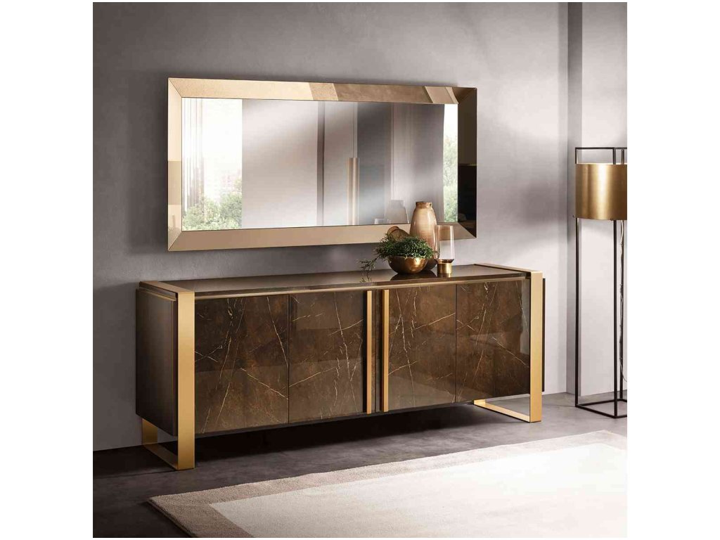 Koncept kolekcie je inšpirovaný klasickým/súčasným dualizmom, kontrastnými textúrami dvoch povrchových úprav - tmavých odtieňov dreva wenge a lesklým mramorovým dekorom, ktoré korunujú elegantné zlaté prvky. Tieto prvky s matným zlatým povrchom sú efektne použité na komodách, vitrínach, jedálenských stoloch, televíznych skrinkách, konzole a konferenčných stolíkoch. Veď posúďte sami!