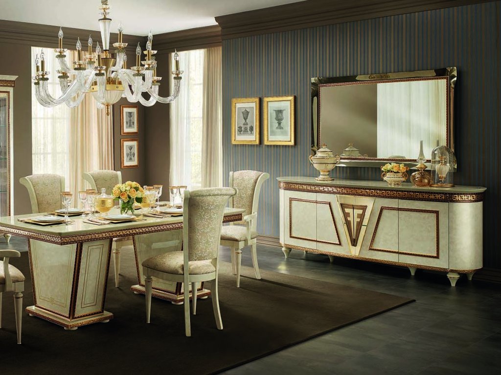 Exkluzívny nábytok ideálny pre nadštandardné zariadenie interiéru jedálne, obývacej časti, predsiene ale i spálne. Luxusná jedáleň FANTASIA je vyrábaná vo vysokom lesku so zlatým dekorovaním.