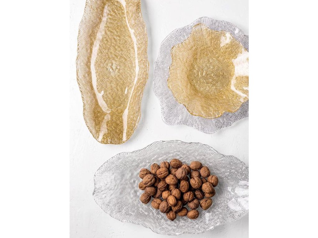 - transparentné sklo a zlaté dekorovanie