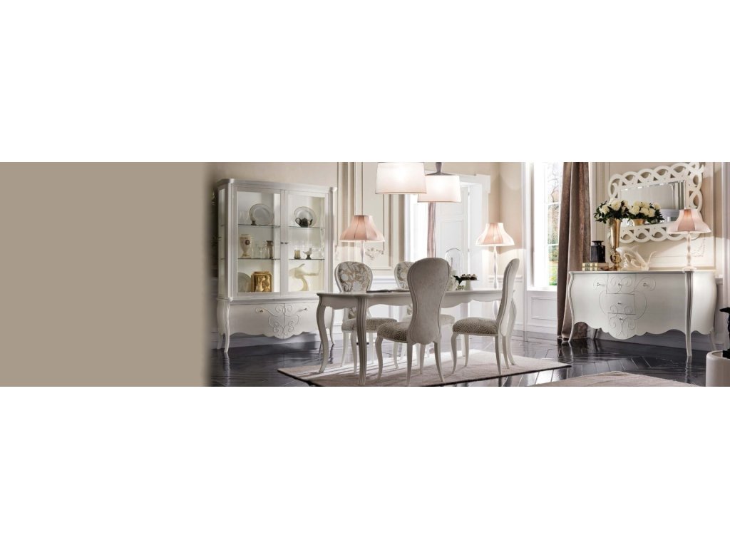 Kolekcia nábytku, ktorá splní Vaše najtajnejšie sny o romantickej obývacej izby a jedálne v talianskom dizajne a kvalite "MADE IN ITALY". Dokonalé detaily, možnosť prispôsobenia farby a zdobenia. Vyberte si lesklé alebo matné prevedenie, vyberte si akúkoľvek farbu so vzorkovníka RAL, alebo rôzne farby dreva - orech, čerešňa a iné. Doprajte si nadštandardný nábytok pre svoj interiér. Nábytok do obývačky FRANCESCO má jemné oblé tvary, ktoré zdôrazňujú majestátnosť celkového dizajnu. Vaša obývačka a jedáleň zažiari a zároveň si doprajete množstvo úložného priestoru. Ak túžite po nadčasovom dizajne pre Váš interiér, kolekcia nábytku FRANCESCO splní Vaše očakávania, ba čo viac, budete očarení finálnym výsledkom. Luxusná kolekcia nábytku FRANCESCO ponúka rovnako zariadenie do celého Vášho interiér a môžete si tak dovoliť zariadiť vstupnú predsieň, jedáleň, spálňu, obývačku, detskú izbu či pracovňu v identickom dizajne.