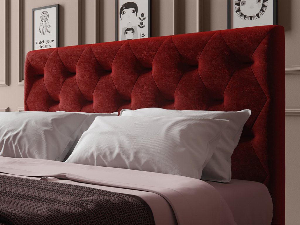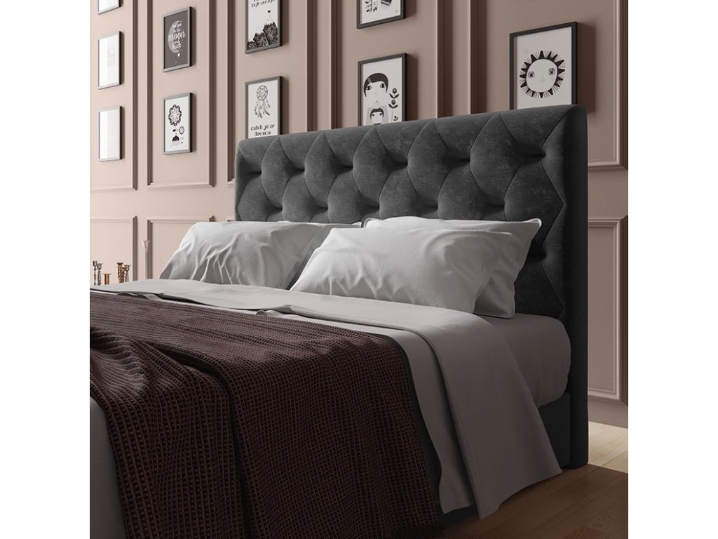 Čalúnené čelo postele FREYA sa tyčí vysoko ako taká láskavá nočná hliadka, ktorá stráži Váš spánok a sny.