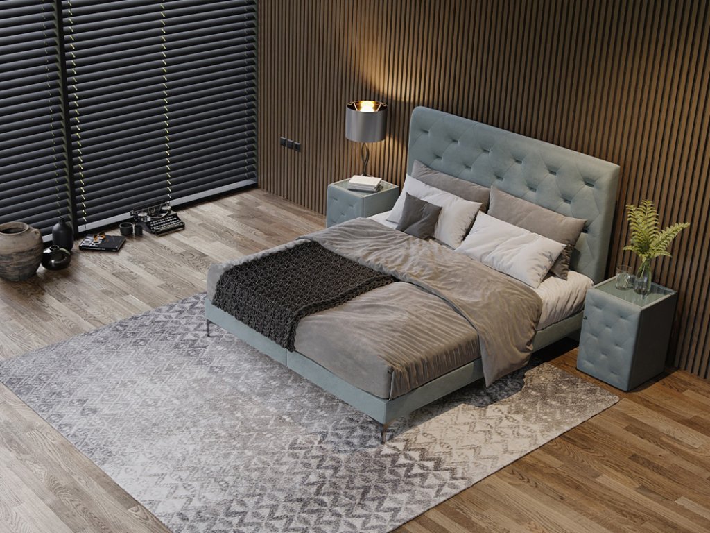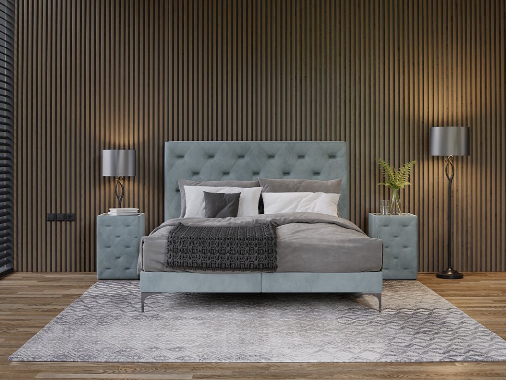 Vytvorte si očarujúci priestor plný pohody a odpočinku s touto príťažlivou prešívanou posteľou FREYA, ktorá sa stane dominantou a jedinečným kúskom Vašej spálne.