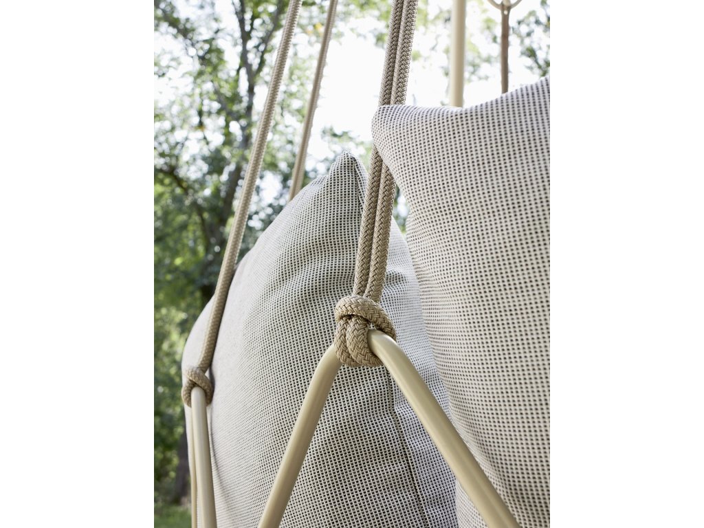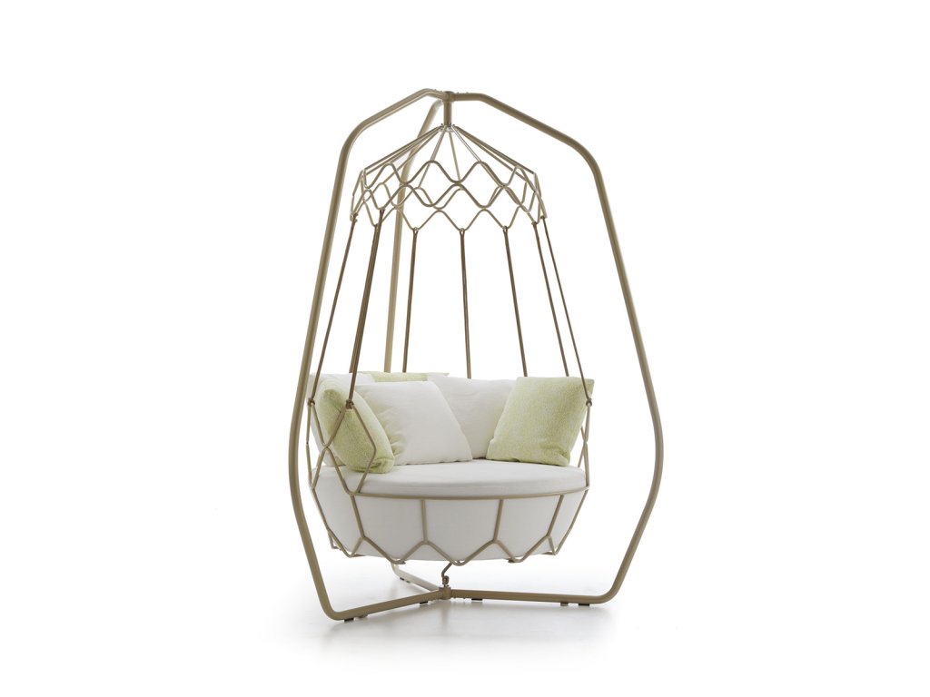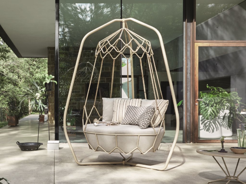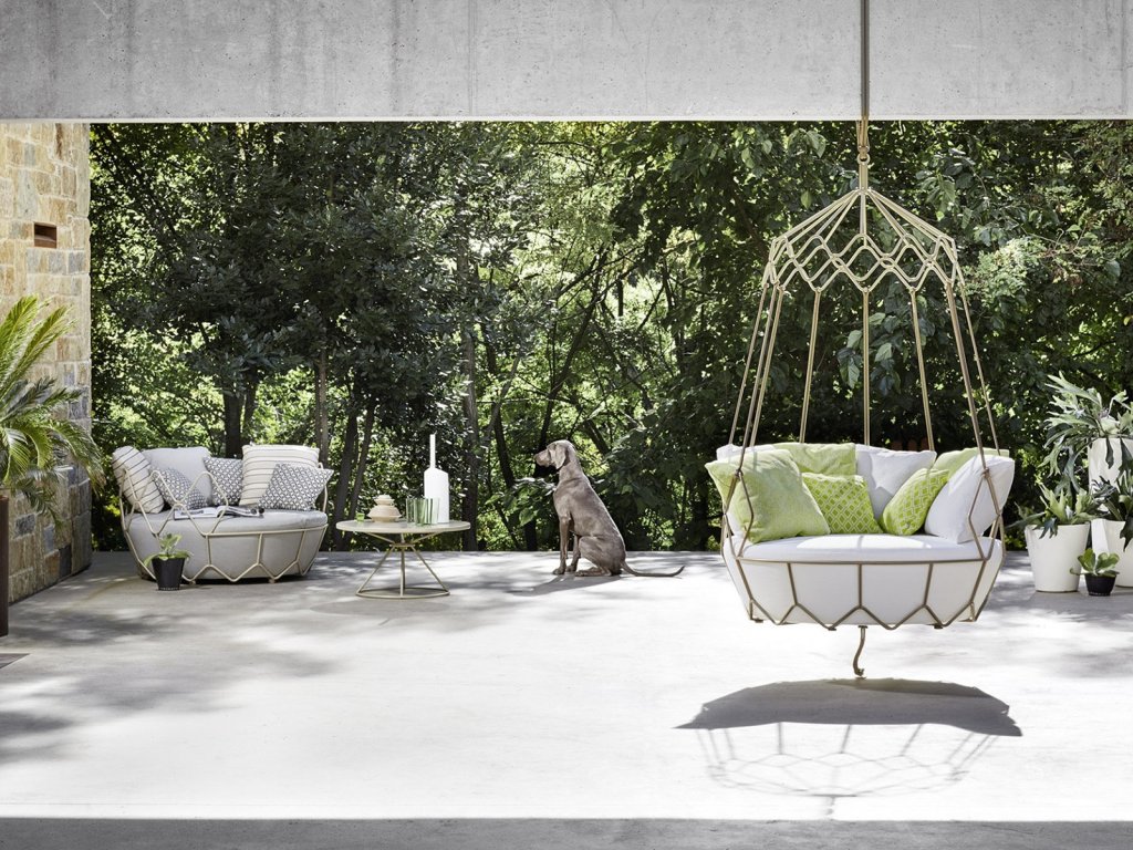 Kolekcia exteriérového nábytku GRAVITY je ikonická vďaka dizajnovému riešeniu hojdačky a kresla. Tieto majú odľahčenú konštrukciu a môžete si ju vybrať v dvoch farbách – Champagne a Graphite. Vankúše a sedák si môžete doladiť s úžasnými dizajnovými textíliami určenými do exteriéru. Doplňte svoj exteriér o exkluzívny ikonický kúsok z kolekcie GRAVITY.