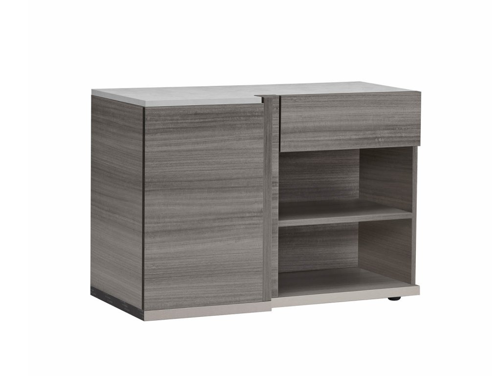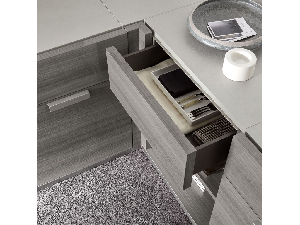 - Farebné prevedenie – CONCRETE GREY SURFACED – šedý betón a EUCALYGREY ECO VENEER HIGH GLOSS – šedá eko-dyha vo vysokom lesku