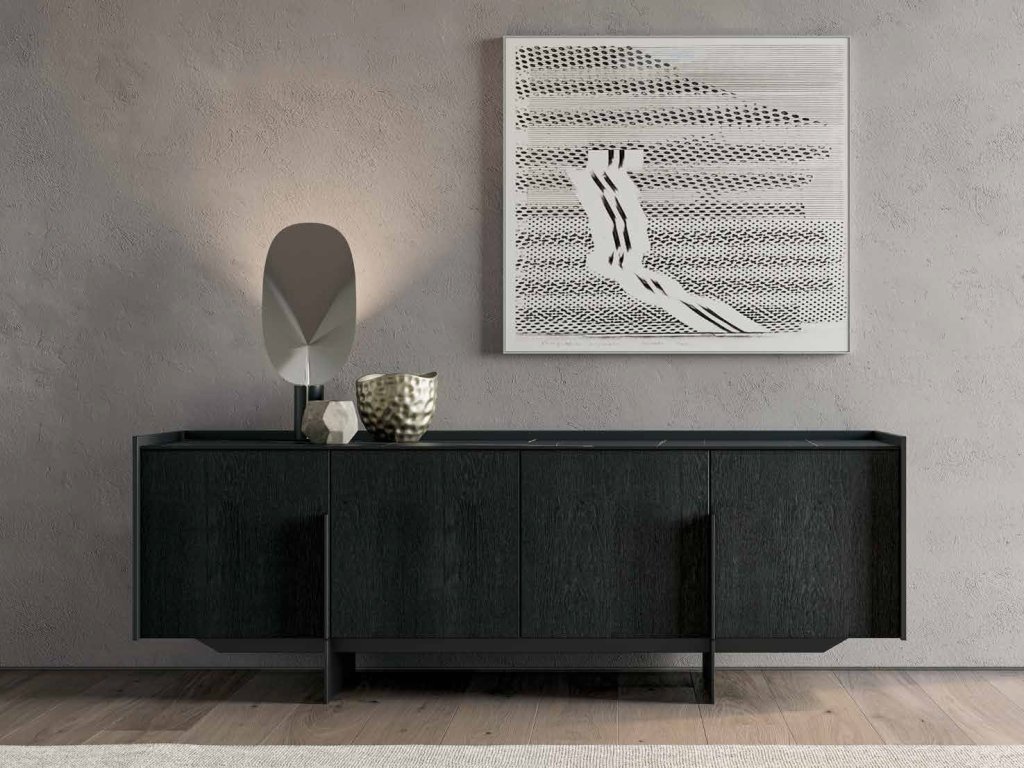 Tento moderný príborník je inšpirovaný eleganciou katany, starodávnej japonskej zbrane, a vyniká svojou kovovou rukoväťou, ktorá sa zasúva do špeciálne navrhnutej základne. Tento jedinečný detail dodáva kusu nábytku nielen funkčnosť, ale aj sofistikovanosť.