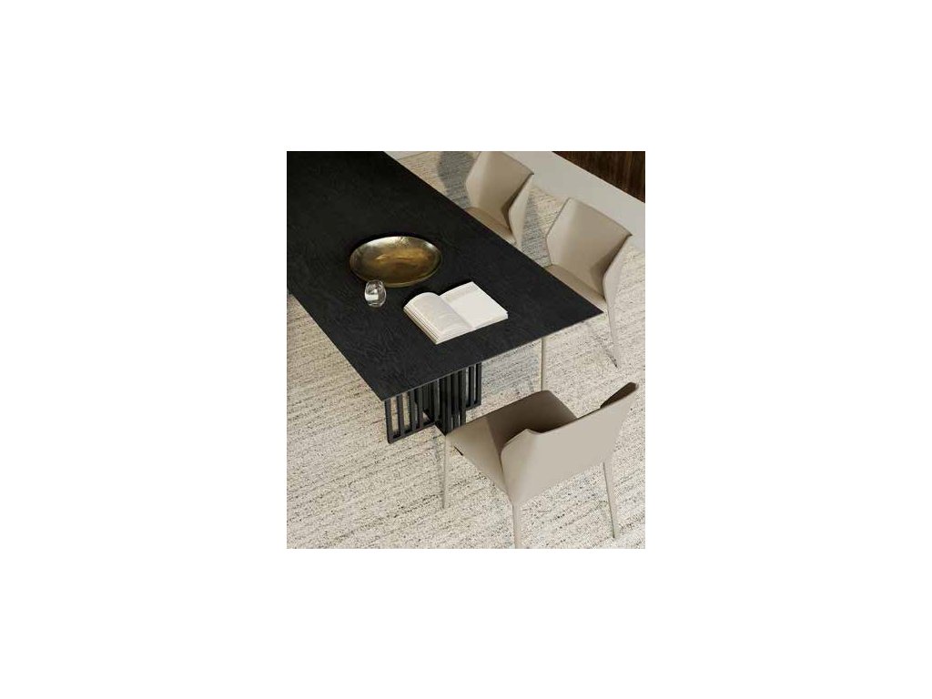 Ide o stôl, ktorý kombinuje dva vzdušné vertikálne prvky, slúžiaci ako nohy, ktoré sú navrhnuté v slede nepravidelne rozložených kovových tyčí usporiadaných do krížového vzoru. Kovová podnož v rôznych povrchových úpravách dodáva stolu moderný nádych, zaručuje pevnú oporu a umožňuje dokonalé zladenie s ostatným nábytkom v interiéri.