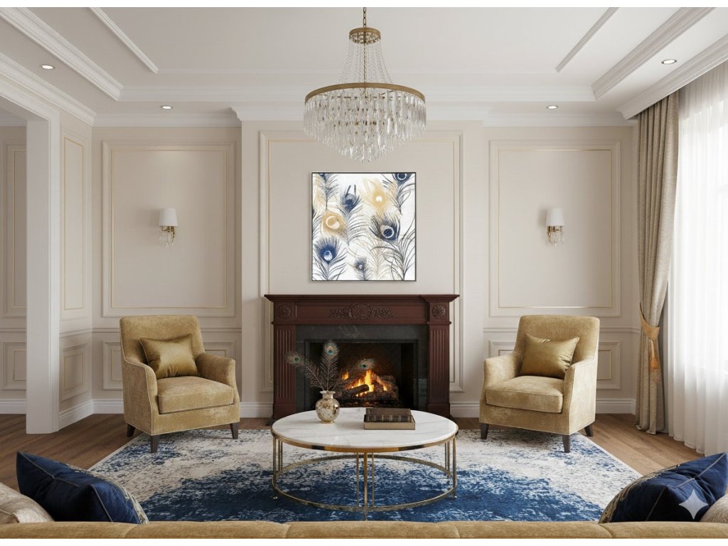 Obraz so zlatými a modrými motívmi pávieho pierka pôsobí elegantne a moderne zároveň. Jemné línie a kontrast farieb prinášajú do priestoru nádych luxusu a exkluzivity, zatiaľ čo biely podklad podčiarkuje ich čistotu a výraznosť. Tento umelecký kúsok sa stane štýlovou dominantou interiéru a dodá mu jedinečný charakter s nádychom noblesy.