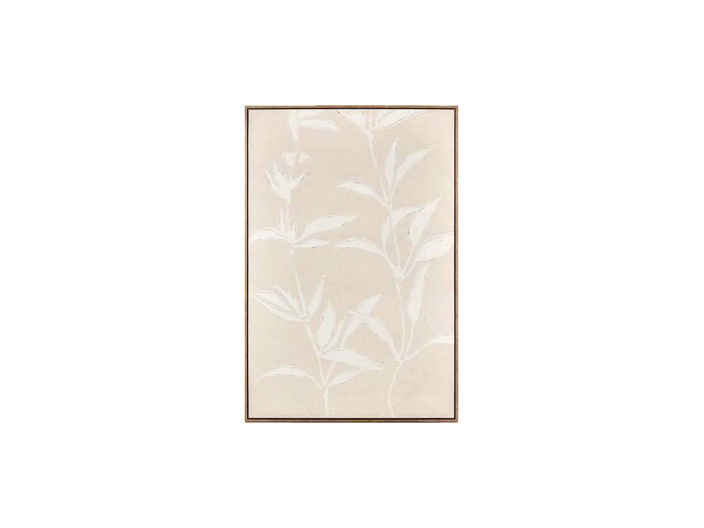 Obraz v tlmených béžových tónoch zobrazuje jemné siluety listov a kvetov v tlmených, svetlých tónoch na neutrálnom podklade, čím vytvára pokojný a harmonický dojem.