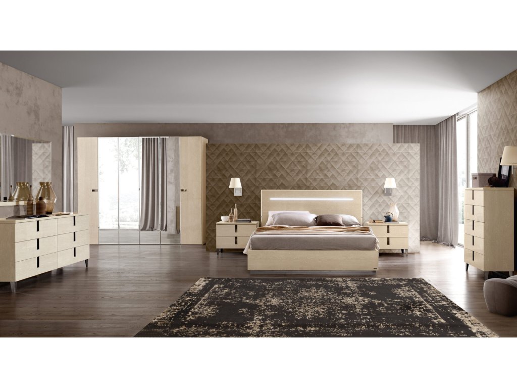 Vyberte si modernú taliansku spálňu z kolekcie PLATINUM, ONDA či AMBRA s exkluzívnou talianskou posteľou LEGNO s LED osvetlením.