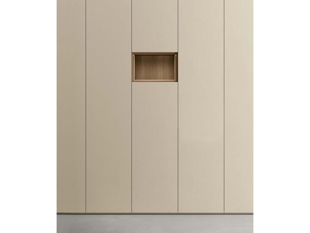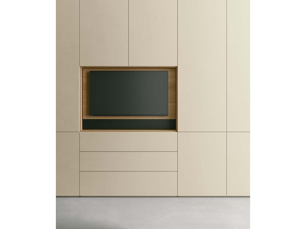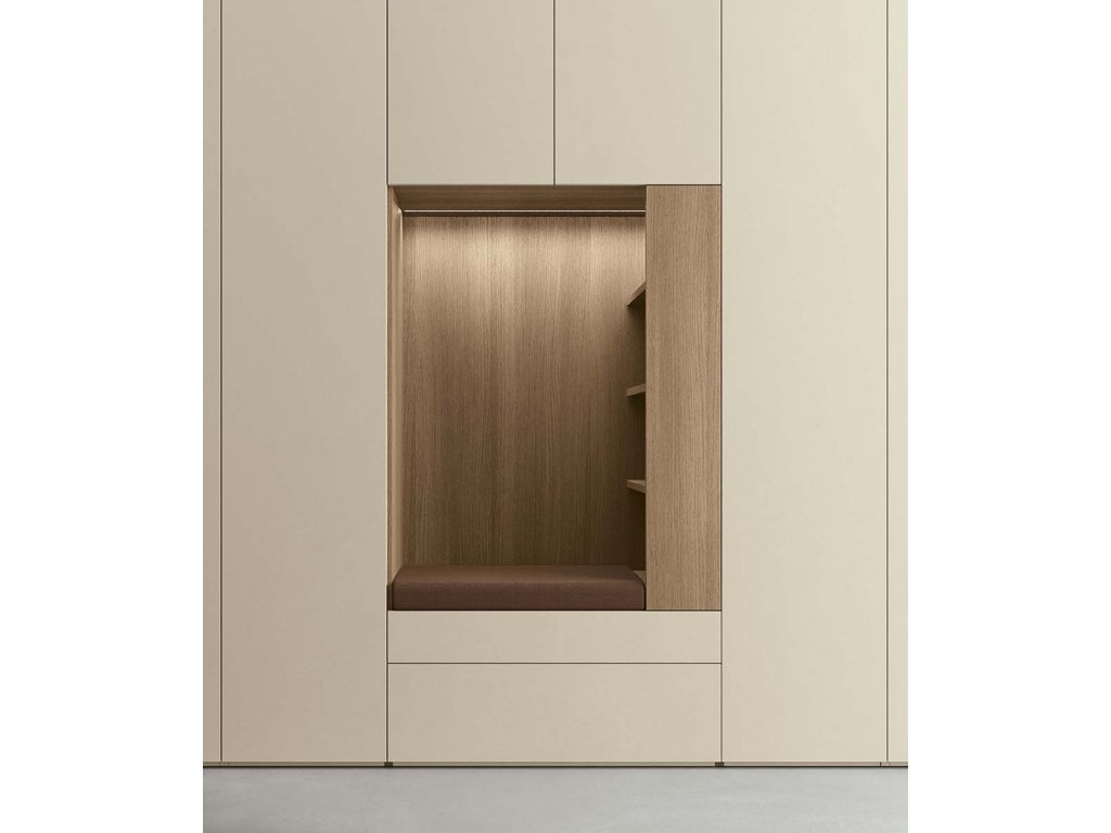 - Úložné skrinky, otvorená nika s tyčou a zrkadlom, knižnica so sklenenými dvierkami, beauty kútik.