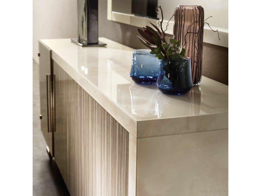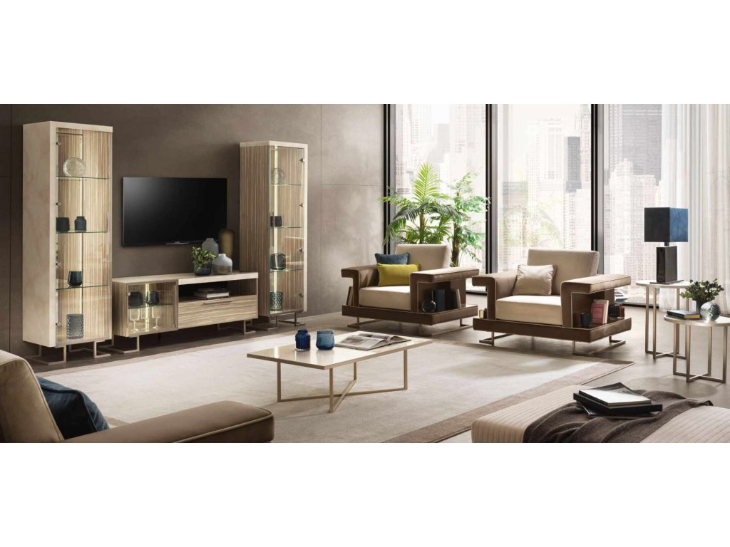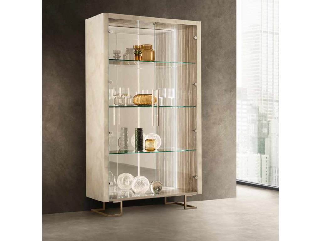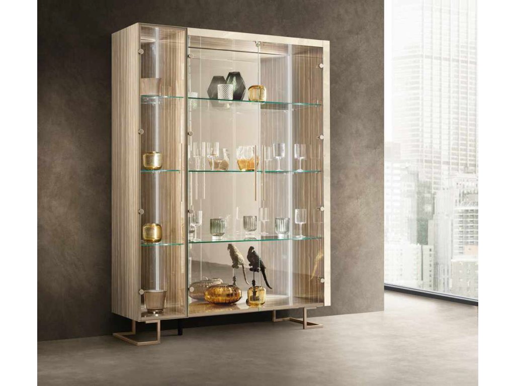 Triezva a minimalistická kolekcia LUCE LIGHT, ktorá zdôrazňuje asymetrie s kontrastnými materiálmi a tvarmi. Kolekcia, ktorej hlavným motívom je svetlo tak ako napovedá aj samotný názov. Povrchová úprava s efektom dreva Zebrano na dvierkach, spolu s vrchnou a bočnými plochami s dekorom Light Onyx spolu krásne dotvárajú jeden celok. Kovové nožičky saténovej farby vo farbe champagne a rukoväte sú zámerne minimalistické, tak aby ponechali hlavnú rolu nábytku. Dizajn typický pre súčasný štýl, bez toho, aby ste stratili zo zreteľa jemné materiály, sofistikovaný dizajn a luxusné detaily. Vďaka najnovšej kolekcii LUCE LIGHT si môžete zariadiť efektne a kompletne dennú aj nočnú časť u Vás doma. Jedinečné kúsky, aj celé kompozície z tejto kolekcie, si Vás podmania. Všestrannosť tejto kolekcie je reprezentovaná predovšetkým modulárnym modelom 2-dverovej vitríny, ktorej centrálny dvojdverový modul je možné doplniť na požiadanie zákazníka o prídavný jednodverový modul vpravo a/alebo vľavo. Zároveň sa dá tento model doplniť o zásuvku čím sa zvýši jeho kapacita úložného priestoru.