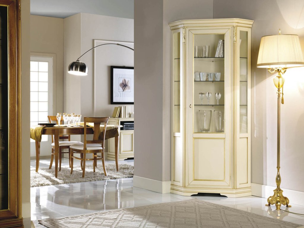 - Rohová vitrína š. 76x76 v. 215 cm