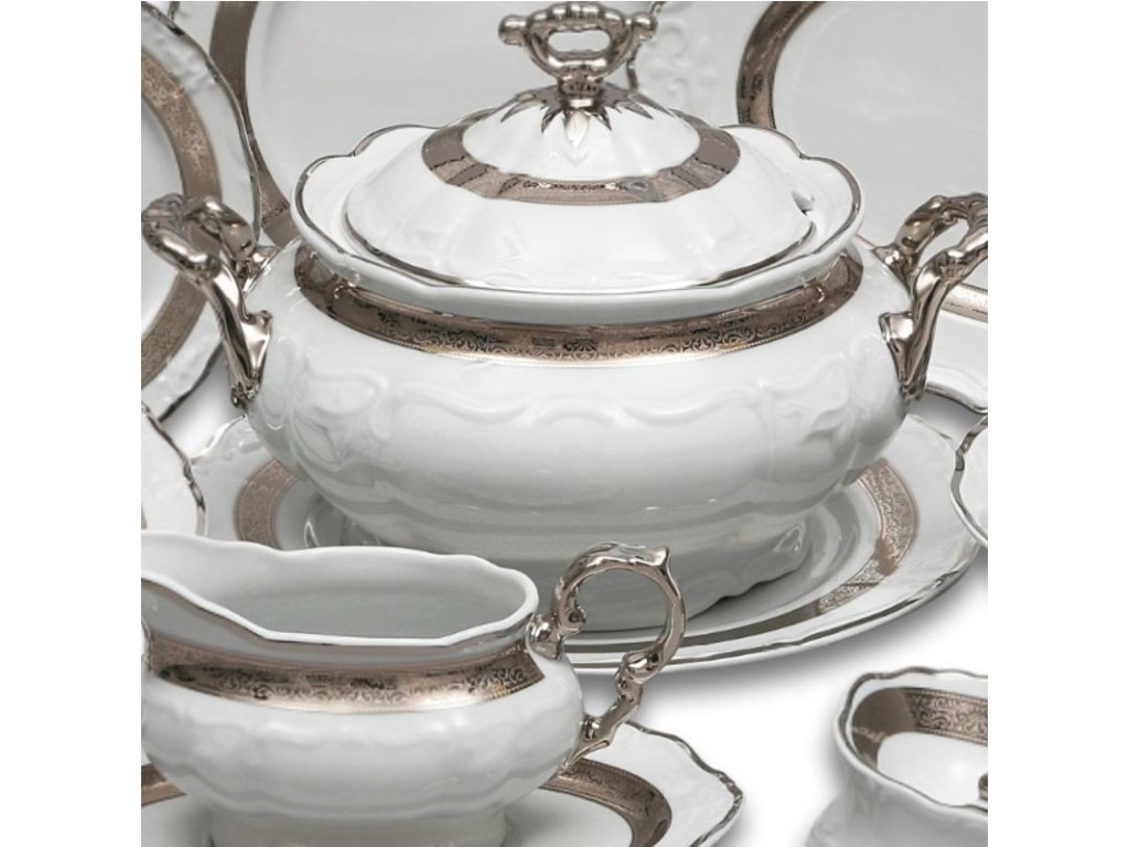- Biely porcelán so zlatým (88003) alebo platinovým dekorom.